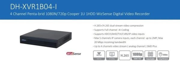دستگاه XVR1B04 داهوا جزو سری Cooper (اقتصادی) این شرکت می باشد که علاوه بر قیمت بسیار مناسب از کیفیت و کارایی فوق العاده ای برخوردار است ، این دستگاه دو دو سری 4 کانال و 8 کانال تولید شده و قابلیت ضبط تصاویر با فرمت H.264 را دارد ، در واقع H.264 استاندارد کد گذاری جهت فشرده سازی تصاویر ویدئویی است که باعث میشود تصاویر با کیفیت HD را برای ذخیره سازی حجم کمی از حافظه را اشغال نماید.