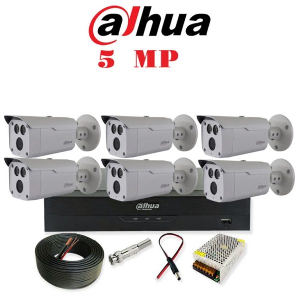 پکیج شش عددی دوربین مداربسته داهوا 5 مگاپیکسل شامل تمامی تجهیزات مورد نیاز برای نصب و راه اندازی سیستم میباشد.تمامی تجهیزات این پکیج اصلی میباشد.پکیج 6 عددی دوربین داهوا دارای انتقال تصویر رایگان در بستر اینترنت ب وسیله گوشی و لبتاب نیز میباشد.