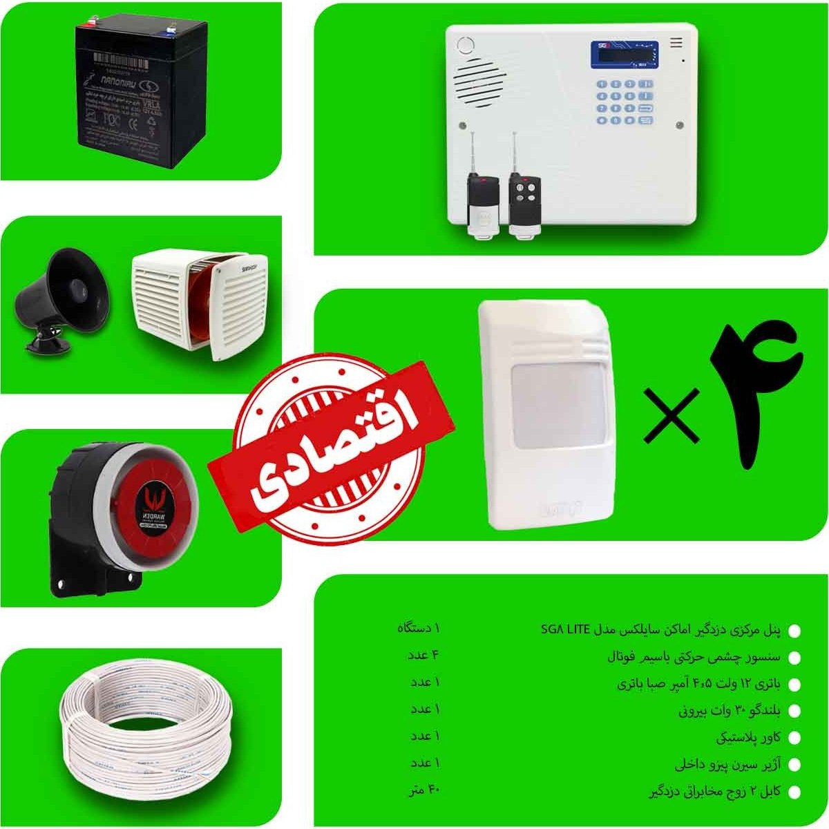 پک دزدگیر اماکن سایلکس SG8-LITE اقتصادی با 4 چشمی مدل ST-PK-DZ-014